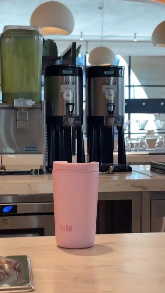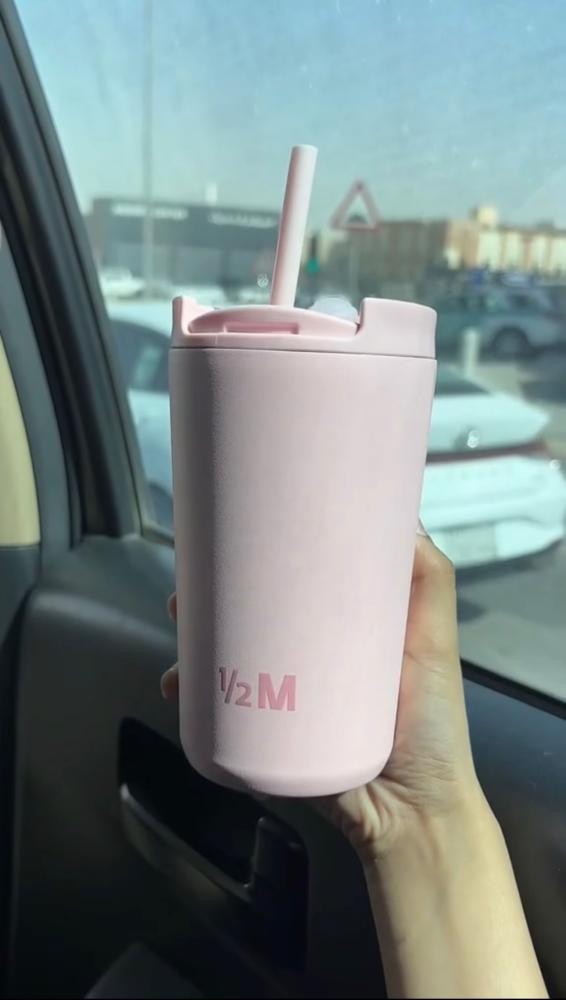 كوب حراري فاخر بتصميم بسيط وأنيق، بلون وردي مطفي يمنح إحساسًا بالهدوء والرُقي 💗.