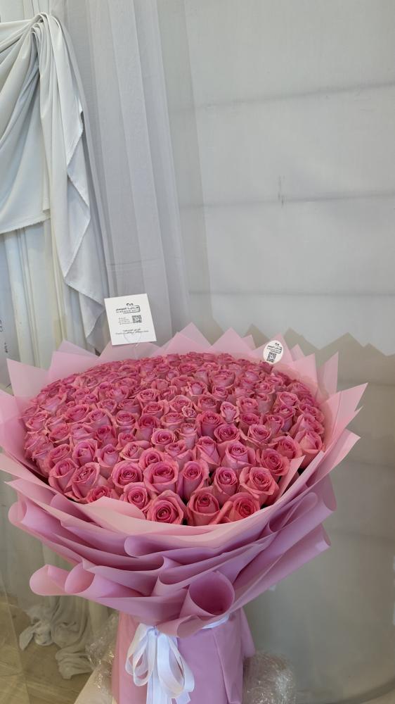 امنح لحظاتك طابعًا خاصًا مع هذه الباقة الوردية الرائعة، المصممة بأناقة فائقة ولمسة فنية تُعبّر عن الرقة والأنوثة والجمال. باقة كبيرة الحجم بتغليف فاخر يجمع بين البساطة والرقي، مثالية لتقديمها في المناسبات الراقية كأعياد الميلاد، التخرج، التهاني، أو مفاجآت الحب الرقيقة.