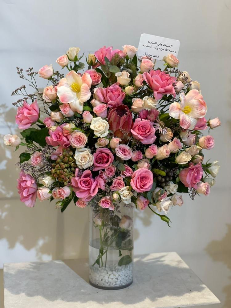 فازة ورد طبيعي أنيقة بتنسيق يدوي يجمع أجمل أنواع الورود الموسمية بألوان زاهية ومنعشة. مثالية كهديّة فخمة في المناسبات الخاصة مثل الأعياد، التهاني، أو حتى لمسة جمالية في منزلك أو مكتبك. تأتي الورود داخل فازة شفافة فاخرة تزيد من جاذبيتها، مع تغليف راقٍ يحافظ على نضارة الزهور لأطول فترة ممكنة